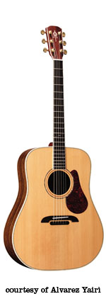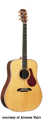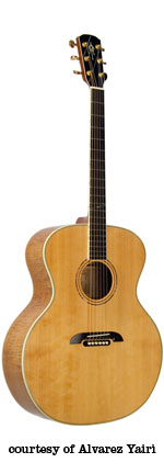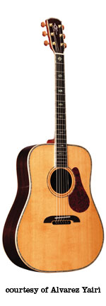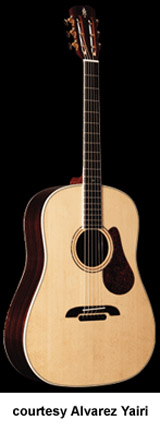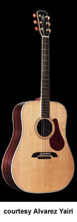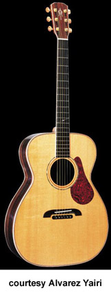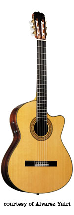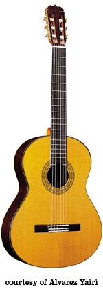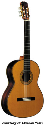 ALVAREZ YAIRI | ACOUSTIC: MASTERWORKS SERIES | The Masterworks Series represents the top-of-the-line Alvarez Guitars. In 2004, the model names received an "M" letter designation. Models CYM 200, DYM 200, DYM 200, DYM 500, and FYM 500V all have a six-month order time, so most dealers will not keep these guitars in stock. | CYM 95 (CY 95) | - classical body style, solid spruce top with scalloped bracing, solid Indian rosewood sides and back, abalone shell soundhole rosette, maple body binding, ebony fingerboard and ebony direct coupled bridge, gold die-cast tuners, available in Vintage Natural Lacquer finish, current mfg. |