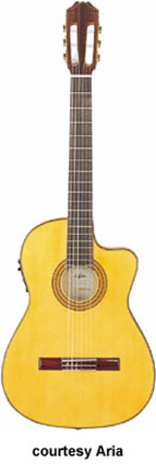 ARIA/ARIA PRO II | ACOUSTIC: FLAMENCO SERIES | | AC 65FCE | - Flamenco guitar, single cutaway, solid spruce top, sycamore back and sides, rosewood fingerboard, 75 mm body depth, mfg. 2001 only. |