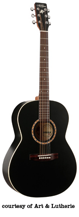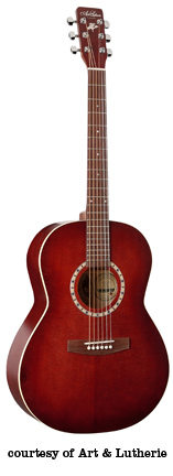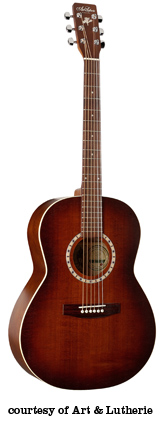 ART & LUTHERIE FOLK | - folk body style, solid cedar top, wild cherry back and sides, Silver Leaf maple neck, rosewood fingerboard, rosewood bridge, available in Almond Brown, Antique Burst, Black, Burgundy, Sunrise (disc.), Trans. Blue (disc.), or Trans. Red (disc.) finish, current mfg. |