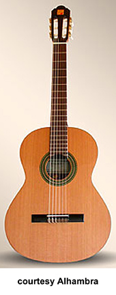 ALHAMBRA | Instruments currently built in Spain. Distributed in the U.S. by Alhambra USA, Inc. located in Asheville, NC. Alhambra has been producing guitars since 1965. | The first Alhambra guitar was manufactured in 1965 in Spain. Alhambra classical guitars are medium to very high quality Spanish instruments. These guitars epitomize the sound and beauty of a traditional Spanish guitar. The more elaborate the wood is, the more the guitar is worth. Rosewood is worth more than mahogany, and Brazilian rosewood comands a premium over all. Models are constructed with either solid cedar, red cedar, or solid spruce tops, and cypress, Brazilian rosewood, laminated rosewood, or laminated sycamore sides. Alhambra is also building a number of steel string guitars. Classical models start at $541. Flamenco guitars start at $866. Steel string guitars start at $1,683. For a full listing of models and information, contact Alhambra directly or visit their website (see Trademark Index). | |