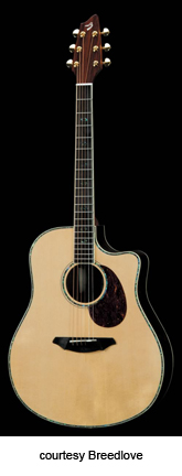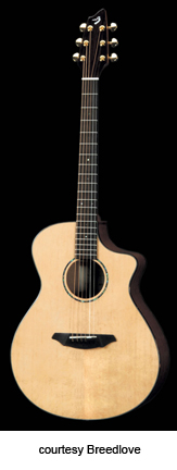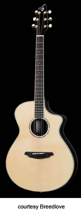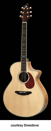 BREEDLOVE | ACOUSTIC: ATLAS FIRST SERIES | The Atlas series was introduced in 2004 as a line of instruments that are produced overseas but use Breedlove's traditional way of designing and building guitars. All guitars are inspected in Bend, Oregon before they are shipped to dealers. | AC25/SM | - single cutaway concert style body, solid mahogany back and sides, solid Stika spruce top, Indian rosewood fingerboard, bridge, and peghead overlay, Fishman Classic IV pickup and electronics, gold hardware, Natural finish, mfg. 2004-08. |