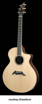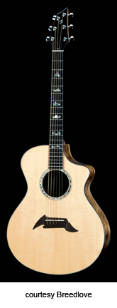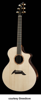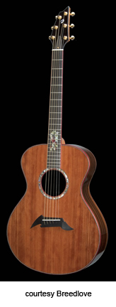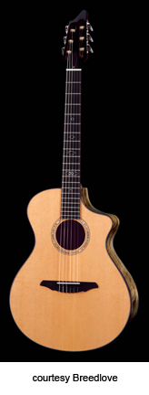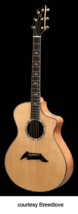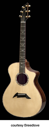 ED GERHARD SIGNATURE | - jumbo style shallow body with soft cutaway (J15), Sitka spruce top, rosewood back/sides, koa binding, wood rosette, 14/20-fret bound ebony fingerboard with pearl dot inlay, ebony pinless bridge, bound peghead, ebony peghead veneer, three-per-side gold mini tuners with oversized buttons, available in satin finish, mfg. 1997-present. |