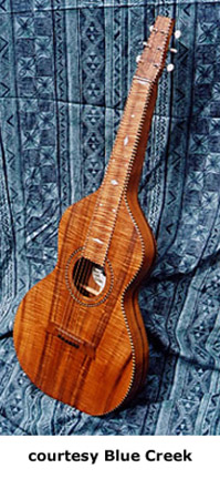BEAR CREEK GUITARS | Instruments currently built in Kula, HI since 1995. | Luthier Bill Hardin builds fine handmade Hawaiian steel guitars in the "Weissenborn" tradition. Instruments are styled after the classic steel guitars of the 1920s but with beautiful craftsmanship and more attention to details than the originals. The price range for the individual models runs from $1,495 to $4,500, plus available options. Bear Creek instruments are played and recommended by noted musician/author Bob Brozman. They were previously located in Monterey, CA. For more information refer to their website or contact them directly (see Trademark Index). | |