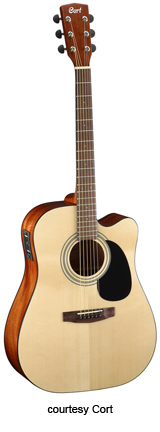 MR-A | - dreadnought single cutaway, spruce top, mahogany sides/back, maple or mahogany neck, 14/20-fret rosewood fingerboard with pearl dot inlay, three-per-side tuners, rosewood bridge, black binding and soundhole rosette, tortoiseshell pickguard, CE-300 active EQ & Slim Jim pickup, chrome hardware, available in Sun Burst Satin, Black, or Natural Satin finishes, mfg. 2001-04. |