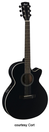 SFX 1F | - single cutaway body, solid spruce top, round soundhole, bound body, rosette, arched back, mahogany back/sides/neck, 14/20-fret rosewood fingerboard with dot inlay, rosewood bridge with white pins, three-per-side chrome die cast tuners, Fishman Classic 4 electronics, available in Black Satin or Natural Satin finish, mfg. 2005-present. |