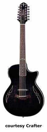 SA Slim Arch Model 12-String | - similar to the SA Slim Arch Model (Tiger Maple), except in 12-string configuration and six-per-side tuners, available in Trans. Black finish, mfg. 2006-present. |