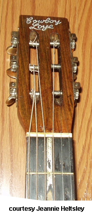 COWBOY LOYE | Unknown production location and date. | Cowboy Loye is actually the stage name of country-western singer Loye Donald Pack who performed between 1920s and early 1940s. At some point in his career, he had a few guitars built with the name "Cowboy Loye" on the label. Very little else is known about the origin of manufacturer, and any further information can be submitted directly to Blue Book Publications. Initial information courtesy: Jeannie Heltsley. | | ACOUSTIC |