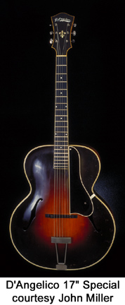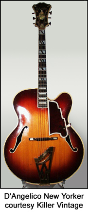 D'ANGELICO | Instruments previously built in New York City, NY 1932-1964. | Master Luthier John D'Angelico (1905-1964) was born and raised in New York City, NY. In 1914, he apprenticed to his great uncle, and learned the luthier trade of building stringed instruments and repair. After eighteen years of working on stringed instruments, he opened his own shop on Kenmare Street (D'Angelico was twenty-seven). D'Angelico guitars and mandolins were entirely handcrafted by D'Angelico with assistance by shop employees such as Vincent DiSerio (assistant/apprentice from 1932 to 1959). In the early 1950s, D'Angelico's workshop had a bench and counter for guitar work, and a showcase with new United or Favilla guitars, used "trade-ins" and a few amplifiers from Nat Daniel's Danelectro or Everett Hull's Ampeg company. A very young James D'Aquisto became the second assistant to the shop in 1953. In 1959, the building where D'Angelico worked and lived was condemned by the city due to an unsafe foundation. While scouting out new locations, D'Angelico and DiSerio had a serious argument over finances. DiSerio left and accepted work at the Favilla guitar plant. After a number of months went by, D'Angelico and D'Aquisto finally reopened the guitar shop at its new location. Unfortunately, D'Angelico's health began to take a turn for the worse. John D'Angelico passed away in his sleep in September of 1964 (source: Paul William Schmidt, Acquired of the Angels). | | D'ANGELICO HISTORY | EARLY GUITARS 1932-34 | LATER GUITARS 1935-1964 | ACOUSTIC MODELS/STYLES |