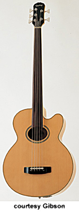 El Capitan Cutaway Fretless (Model EBC4F) | - similar to El Capitan, except features a single rounded cutaway body, fretless fingerboard, available in Ebony, Natural, or Vintage Sunburst finishes, disc. 1998. |