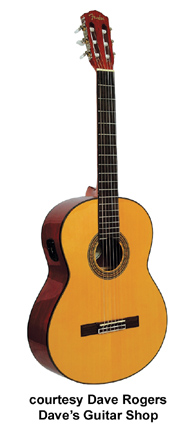 CG-25 SCE (NO. 094-2505) | - classical style with cutaway design, solid cedar top, round soundhole, ovangkol back/sides, nato neck, 12/19-fret rosewood fingerboard, slotted headstock, three-per-side gold tuners, piezo transducer, active EQ, available in Gloss finish, mfg. 1995-99. |