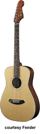 FENDER | ACOUSTIC: CALIFORNIA SERIES | The California series was introduced circa 1982. Models were produced in Japan from 1982 to 1985 and then Korea from 1985 until 1994. The California Series was reintroduced in 2005, and instruments are produced in China. The first three models are the Kingman, Malibu, and Sonoran. For the first versions of the Kingman and Malibu models, refer to Acoustic: Dreadnought 1963-1970 Mfg. | AVALON (NO. 094-5801) | - folk style, spruce top, round soundhole, black pickguard, three-stripe bound body/rosette, mahogany back/sides/neck, 14/20-fret bubinga fingerboard with pearl dot inlay, bubinga strings through bridge, six-per-side die-cast tuners, available in Natural or Wine Red finish, mfg. 1985-1994. |