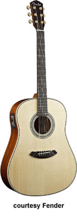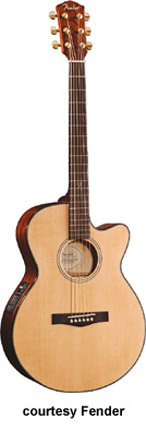 GDC-100 SCE (NO. 095-8000) | - single cutaway concert-style body, solid spruce top, laminated ash back/sides, nato neck, rosewood fingerboard with 12th fret Fender inlay, round soundhole with rosette, chrome hardware, Piezo pickup with active electronics, available in Natural finish, mfg. 2004-07. |
