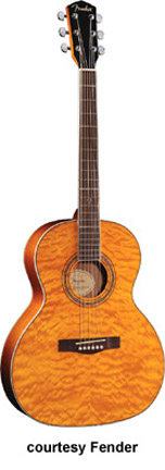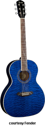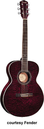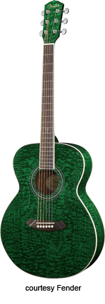 GDO-200 (NO. 095-8905) | - orchestra style body, laminated quilt ash top, laminated ash back/sides, nato neck, rosewood fingerboard with 12th fret Fender inlay, round soundhole with rosette, chrome hardware, available in Trans. Green (2006-07), Trans. Gray (2006-07), or Trans. Violet finish, mfg. 2004-08. |