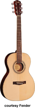GDP-100 (NO. 095-8901) | - parlor-style body, laminated spruce top, laminated mahogany back/sides, mahogany neck, rosewood fingerboard with 12th fret Fender inlay, round soundhole with rosette, chrome hardware, Natural finish, mfg. 2004-08. |