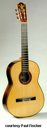 FISCHER, PAUL | Acoustic guitars currently produced in Oxfordshire, United Kingdom since 1956. | Luthier Paul Fischer builds fine classical guitars at his studio in the United Kingdom. Fischer started his career in 1956 when he studied under the renowned harpsichord builder Robert Goble. He later took his harpsichord making skills to the guitar and lute maker David Rubio, at the same time extending his making range to early fretted plucked instruments and the modern classical guitar. He remained as manager of the Rubio workshop for six years before establishing his own studio in 1975. Since then he has become one of England's most prominent classical guitar builders and has built guitars for players including the Assad Brothers, Paulo Bellinati and Jason Vieaux. In 2006, Fischer celebrated his 50th anniversary as an instrument maker with a special classical guitar. For more information, visit Fischer's website (see Trademark Index). | |