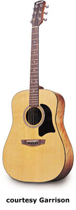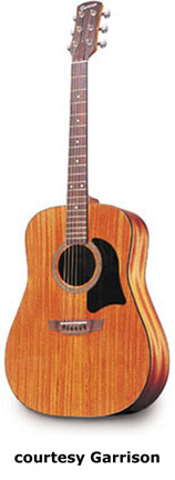 GARRISON GUITARS | ACOUSTIC: G SERIES | The G-Series features the full Griffiths Active Bracing System. The glass-fibre composite is used in the bracing, bridge, binding, and the neck. The wood components are then attached to this frame. In 2006, a grand concert and parlor body style were introduced. They are available in all series, except the parlor is not available as a 12-string. The Dreadnought has a prefix of GD, Grand Concert of GGC, and the Parlor has a prefix of GP. In 2007, birch body, neck, and headstock binding became optional. | 4 SERIES | - dreadnought, grand concert, or parlor style, solid sapele back and sides, solid Sitka spruce top, black body binding, round soundhole with Herringbone wood pattern inlay, mahogany neck, 14/20-fret rosewood fingerboard with dot inlay, three-per-side tuners, rosewood bridge, tortoiseshell pickguard, chrome hardware, Buzz Feiten Tuning System, Natural finish, 25.4 in. scale, current mfg. |