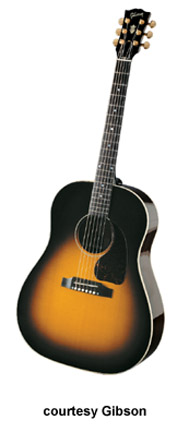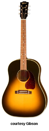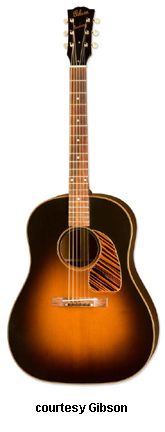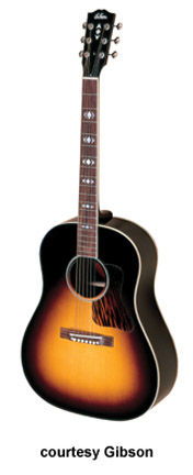 SOUTHERN JUMBO (SJ, HISTORIC) | - J-45 style body, solid spruce top, mahogany back/sides/neck, bound rosewood fingerboard and bridge, vintage styling, available in Vintage Sunburst (disc., reintroduced 2004) or Triburst '47 (mfg. 2002-03) finish, mfg. 1999-2008. |