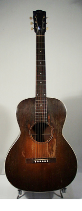 L-1 Flattop | - spruce top, round soundhole, bound body, three-ring rosette, mahogany back/sides, maple neck, 12/19-fret ebony fingerboard with pearl dot inlay, ebony pyramid bridge with black pins, painted peghead logo, three-per-side tuners with plastic buttons, mfg. 1926-1937. |