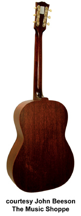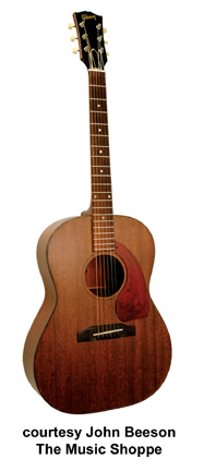 ARLO GUTHRIE LG-2 3/4 (MODEL LSAG) | - patterned after the LG-2 that Woody Guthrie gave to Arlo Guthrie in 1953, similar to LG-2 3/4, except has Sitka spruce top, 14/20-fret, mahognay neck/back/sides, available in Vintage Sunburst, limited mfg. 2003, reintroduced 2005-present. |