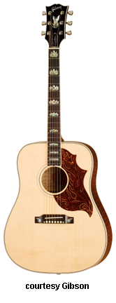 ACOUSTIC FIREBIRD CUSTOM (MODEL SSFB) | - patterned after the J-30, square shoulder dreadnought, Sitka spruce top, quilted Western maple back/sides, curly maple neck with ebony fingerboard with mother-of-pearl/abalone flame inlays, pickguard has engraved flames, 24.75 in. scale, 14/20-fret, active Fishman pickup, gold Grover tuners, Antique Cherry finish, limited mfg. by Custom Shop beginning 2002-present. |