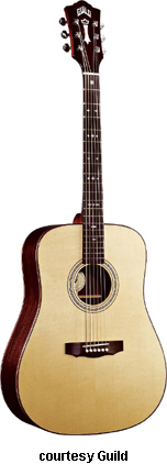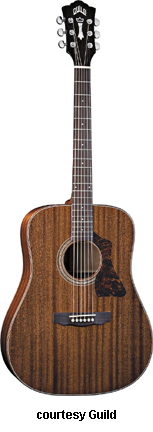 GAD-25 (NO. 381-0100) | - dreadnought body, solid mahogany top, solid mahogany back and sides, wood binding, three-piece mahogany neck, 20-fret Indian rosewood fingerboard with dot inlay, three-per-side tuners, Indian rosewood bridge, tortoise pickguard, chrome hardware, available in Natural finish, mfg. summer 2005-present. |