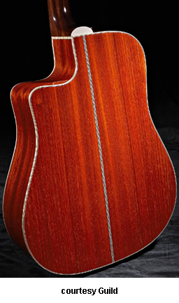GAD-50PCE (NO. 381-2506) | - single cutaway dreadnought style body, solid Sitka spruce top, solid African padauk back and sides, round soundhole with rings, wood body binding, one-piece mahogany neck, dovetail neck joint, 14/20-fret rosewood fingerboard with diamond and snowflake inlays, Chesterfield and logo headstock inlays, three-per-side Grover chrome tuners, rosewood bridge with ebony pins, black pickguard, Fishman Matrix 1 electronics, available in Antique Burst, Ice Tea Burst (2007-08), or Natural finish, 25.5 in. scale, mfg. 2007-present. |