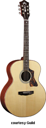 GAD-JF48 (NO. 381-3100) | - jumbo body, solid spruce top, solid mahogany backand sides, wood binding, one-piece mahogany neck, 20-fret Indian rosewood fingerboard with diamond inlays, Indian rosewood bridge, tortoise pickguard, rosewood peghead cap, chrome hardware, available in Amber Burst, Antique Sunburst, Black, Ice Tea Burst (2005-06), or Natural finish, mfg. summer 2005-08. |