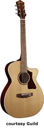 CO-1 (NO. 380-6000) | - F-30 Orchestra-style body, solid western red cedar top, solid mahogany back and sides, round soundhole with Madagascar rosewood and ivoroid, red, and black accent lines rosette, mutli-layer ivoroid binding, Guild neck block system, one-piece mahogany neck, 14/21-fret Madagascar rosewood fingerboard with dot inlay, three-per-side Gotoh tuners, Madagascar rosewood bridge and end pins, tortoiseshell pickguard, available in Natural finish, mfg. summer 2006-08. |
