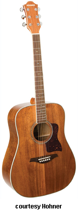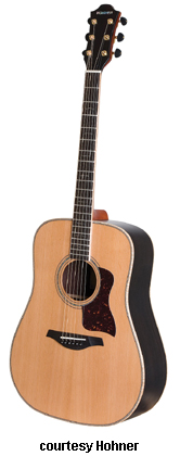 DL500 | - dreandought-style body, Lacewood top, back, and sides, round soundhole with multi-ring abalone rosette, multi-ply top and back body binding, one-piece mahogany neck, 14/20-fret bound rosewood fingerboard with oval abalone pearl inlays, bound Lacewood headstock overlay, three-per-side chrome Grover tuners, rosewood bridge, tortoise pickguard, available in Natural High Gloss finish, new summer 2008. |