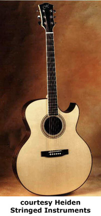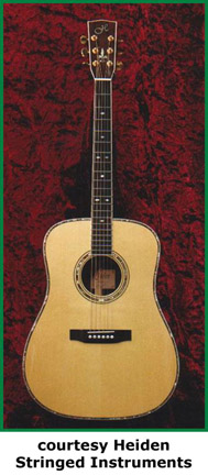 HEIDEN STRINGED INSTRUMENTS | Instruments currently built in Chilliwac (British Columbia), Canada since 1974. Distributed by Heiden Stringed Instruments of Chilliwac (British Columbia), Canada. | Luthier Michael Heiden is currently handcrafting some very high quality acoustic guitar models and mandolins. Current guitar models include the Jumbo, Junior, OM, and Dreadnought. Heiden has produced other style models in the past and several types of woods are available for construction. For further information regarding model specifications, custom orders, and pricing, visit Heiden's website or contact him directly (see Trademark Index). | |