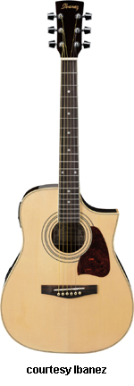 DT100ECE Cutaway Electric | - similar to the DT100E, except has a single cutaway, piezo pickup, and AEQ200T electronics with two-band EQ, available in Natural finish, new 2009. |