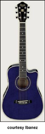 DTME CUTAWAY ELECTRIC | - similar to the DTMA except has a single cutaway and Piezo transducer with two-band EQ, available in Gloss Trans. Blue, mfg. 2000-08. |