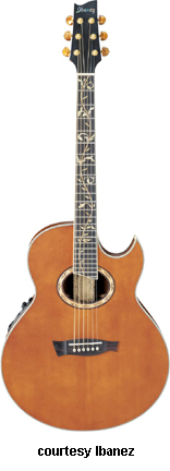EP9 EUPHORIA STEVIE VAI | - single sharp cutaway body, solid Englemann spruce top, solid mahogany back and sides, mulit-bound body, oval soundhole with Stevie Vai logo wood rosette, mahogany neck, 14/24-fret extended bound rosewood fingerboard with tree-of-life green pearl inlay, abalone headstock inlay with three-per-side gold Grover tuners with buttons, rosewood bridge, Fishman AURA electronics, available in Resonant Root Beer Low Gloss finish, mfg. 2006-present. |