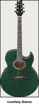 EP7 EUPHORIA STEVIE VAI | - single sharp cutaway body, quilted maple top/back/sides, mahogany neck, rosewood fingerboard with tree-of-life green pearl inlay, body binding, rosewood bridge, oval soundhole with Stevie Vai signature, B-Band UST pickupand A5 EQ, gold hardware, available in Resonant Forest Green finish, mfg. 2004-05. |