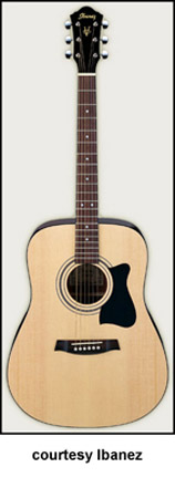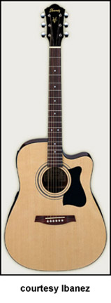 V100 CE NT | - dreadnought style body with single rounded cutaway, spruce top, round soundhole, body binding, mahogany back/sides, tempered mahogany neck, 14/20-fret rosewood fingerboard with pearl dot inlay, rosewood bridge with white bridgepins, three-per-side chrome die-cast tuners, tortoiseshell pickguard, available in Natural gloss finish, piezo bridge pickup, EQ30 volume/three-band EQ, mfg. 1998-99. |
