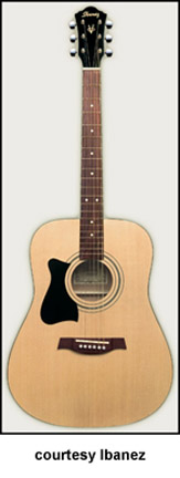 VS100 NT | - dreadnought style, spruce top, round soundhole, body binding, mahogany back/sides, tempered mahogany neck, 14/20-fret rosewood fingerboard with pearl dot inlay, rosewood bridge with white bridgepins, three-per-side chrome die-cast tuners, tortoise pickguard, available in Black or Natural gloss finish, mfg. 1998-2000. |