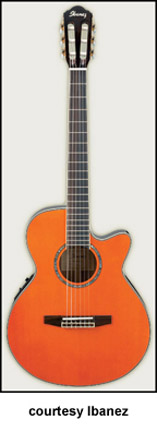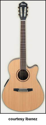 AEF20CSNE | - nylon string configuration, single cutaway body, solid cedar top, arched mahogany back, mahogany sides, mahogany rosette, mahogany neck, 14/21-fret rosewood fingerboard, rosewood bridge, Ibanez B-Band pickup & AEQ-SRT electronics, gold hardware, Resonant Low Gloss finish, mfg. 2005-08. |