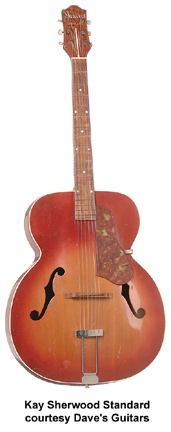 KAY | Instruments currently produced in Asia. Previously built in Chicago, IL between the 1930s and the late 1960s and in Japan during 1970s. Distributed by the Kay Guitar Company in Newport Beach, CA. See chapter on House Brands. | The roots of the Kay Musical Instruments company began back in 1890, when the Groeschel Company of Chicago, Illinois first began building bowl-back (or potato bug) mandolins. In 1918 Groeschel was changed to the Stromberg-Voisenet Company, and incorporated in 1921. Vice-president C.G. Stromberg directed production of guitars and banjos under the Mayflower trademark (See Mayflower). This Stromberg is not to be confused with luthier Charles Stromberg (and son Elmer) of Boston, Massachusetts. Stromberg-Voisenet introduced the process of laminating wood tops and backs in 1924, and also began arching instruments' tops and backs. Henry Kay Kuhrmeyer, who later became company president, offered use of his middle name on the more popular Kay-Kraft series of Stromberg-Voisenet's guitars, mandolins and banjos. The Kay era began when Henry Kay Kuhrmeyer bought the Stromberg-Voisenet company in 1928. Kuhrmeyer renamed the company Kay Musical Instruments in 1931, and began mass-producing stringed instruments in large volume. Kay, like Washburn at the turn of the century, claimed production of almost 100,000 instruments a year by the mid-1930s. Kay instruments were both marketed by the company themselves and produced for jobbers (distributors) and retail houses under various names. Rather than produce a list here, the Blue Book of Acoustic Guitars has attempted to identify Kay-produced House Brands throughout the alphabetical listing in this text. Many of these instruments were entry level or students instruments then, and should be considered entry level even now. But as Jay Scott (author of 50's Cool: Kay Guitars) points out, "True, the vast majority of Kay's student-grade and intermediate guitars were awful. But the top of each line - banjo, guitar and mandolin (especially the acoustic and electric jazz guitars and flattop acoustics) - were meritorious pieces of postwar musical art." Kay introduced upright basses in 1937, and marketed them under both the Kay trademark and under K. Meyer (a clever abbreviation of Kuhrmeyer?). After Leo Fender debuted his Precision electric bass at the 1951 NAMM trade show, Kay was the first company to join Fender in the electric bass market as they introduced their K-162 model in 1952. Kay also went on to produce some of the coolest mixtures of classic archtop design and '50s modern acrylic headstocks on the "Gold K" line that debuted in 1957. The Kay Musical Instrument company was sold to an investment group headed by Sydney Katz in 1955. Katz, a former manager of Harmony's service department, was more aggressive and competitive in the guitar market. Kay's production facilities expanded to try to meet the demand of the guitar market in the late 1950s and early 1960s. A large number of guitars were produced for Sears under their Silvertone trademark. At the peak of the guitar boom in 1964, Kay moved into a new million dollar facility located near Chicago's O'Hare Airport. Unfortunately, by 1965 the guitar market was oversaturated as retail demand fell off. While Kay was still financially sound, Katz sold the company to Seeburg. Seeburg, a large jukebox manufacturer based in Chicago, owned Kay for a period of two years. At this time, the whole guitar industry was feeling the pinch of the economy. Seeburg wanted to maintain their niche in the industry by acquiring Valco Guitars, Inc. (See National or Dobro) and producing their own amplifiers to go with the electric Kay guitars. Bob Keyworth, the executive vice-president in charge of Kay, suggested the opposite: Seeburg should sell Kay to Valco. Robert Engelhardt, who succeeded Louis Dopyera in Valco's ownership in 1962, bought Kay from Seeburg in June 1967. Valco moved into the Kay facilities, but Engelhardt's company was under financed from the beginning. Engelhardt did make some deal with an investment group or financial company, but after two years the bills couldn't be paid. The investment group just showed up one day, and changed the plant locks. By 1969 or 1970, both Valco Guitars Inc., and the Kay trademark were out of business. The rights to the Kay name were acquired by Sol Weindling and Barry Hornstein, who were importing Teisco Del Rey (Kawai) guitars to the U.S. market with their W.M.I. importing company. W.M.I. begins putting the Kay name on the Teisco products beginning in 1973, and continued on through the 1970s. In 1980, Tony Blair of A.R. Enterprises purchased the Kay trademark. The Kay trademark is now on entry level/beginner guitars built in Asia. Source: 1950s/1960s company history courtesy Jay Scott, 50's Cool: Kay Guitars, contemporary history courtesy Michael Wright, Vintage Guitar Magazine, individual model listings: Michael Wright, Guitar Stories Volume Two. | | ACOUSTIC ARCHTOP | ACOUSTIC FLATTOP |