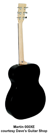 000XE Black Electric | - similar to the 000XM, except has a HPL Jett Black top, back, and sides, a HPL Jett Black headstock overlay, no pickguard, and Fishman Prefix Pro electronics, mfg. summer 2001-summer-2005. |