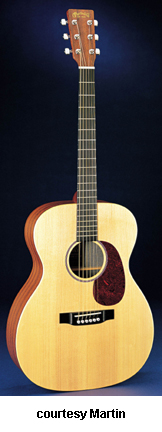 000XM | - 000-style body, HPL spruce patterned top, HPL mahogany patterned textured back and sides, black and gold herringbone-style rosette, select hardwood neck, 14/20-fret East Indian rosewood fingerboard with no inlays, HPL mahogany patterned headstock overlay, three-per-side chrome tuners, East Indian rosewood bridge, tortoiseshell pickguard, available in Natural semi-gloss finish, 25.4 in. scale, mfg. 1999-2000. |