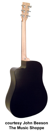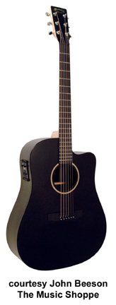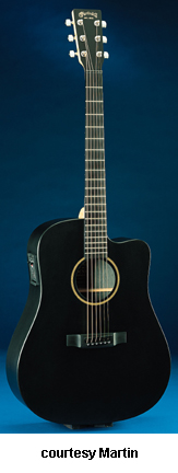 DCXE Black Cutaway Electric | - similar to the DXM, except has a single cutaway, Jett Black top, back, and sides, black Micarta fingerboard, a Jett Black headstock overlay, black Micarta bridge, and Fishman Prefix Pro electronics, mfg. summer 2001-present. |