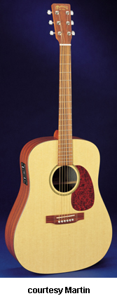 DXM | - dreadnought body style, HPL spruce pattern top, HPL textured mahogany pattern back and sides, gold and black herringbone-style rosette, rust Stratabond neck, 14/20-fret Morado (early models) or East Indian rosewood fingerboard, HPL mahogany pattern headstock overlay, three-per-side chrome tuners with small buttons, Morado (early models) or East Indian rosewood fingerboard, tortoiseshell pickguard, available in Natural semi-gloss finish, 25.4 in. scale, mfg. summer 1998-present. |