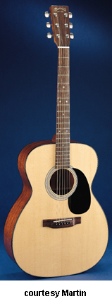 MARTIN | Acoustic: Standard Grand Auditorium (000) Series | Size 000 (Auditorium) guitars feature a lower bout width of 15 in., 4.125 (14-fret) or 4 1/16 (12-fret) in. depth, 19.375 (14-fret) or 20 7/16 in. length, and 24.9 (most common) or 25.4 (1924-1934 mfg., 12-fret only) in. scale. Martin produced a variety of different 000-style guitars that were built in very limited quantities. These models include one 000-17 (1911 only), one 000-30 (1919 only), one 000-40 (1909 only), one 000-40 Hawaiian (Model 000-40H, 1933 only), one 000-41 (1975 only), and three 000-44s that were specially built for performer Vahdah Olcott-Bickford (1917-19). | 000-16(M) | - Grand Auditorium body style, solid spruce top, solid mahogany back and sides, round soundhole with three-stripe rosette (5/9/5 grouping), tortoise top and back binding, mahogany neck, 14/20-fret rosewood fingerboard with slotted diamond inlays, rosewood headstock overlay with raised gold foil logo, three-per-side chrome tuners, rosewood bridge, black bridge pins with pearl dots, tortoise pickguard, Natural satin finish, 24.9 in. scale, mfg. 1989-1995. |