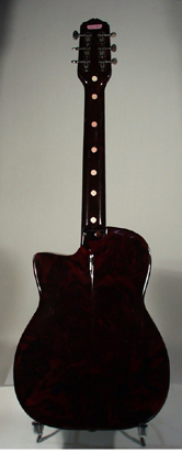 MACCAFERRI | ACOUSTIC | | G-30 FLATTOP | - single cutaway hollow plastic body, f-holes, neck-thru body, 20-fret fingerboard with large white dot inlays, elaborate tailpiece, bridged molded in the top, three-per-side banjo-style tuners, available in White finish, mfg. 1953-mid 1950s. |