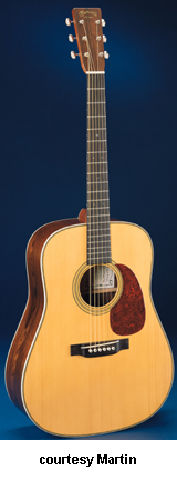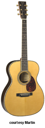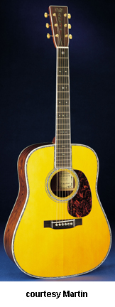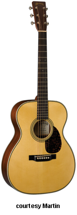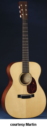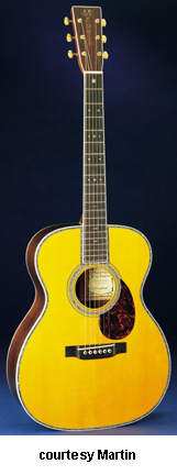 MARTIN | ACOUSTIC: AUTHENTIC GOLDEN ERA/MARQUIS SERIES | Martin's Authentic, Golden Era, and Marquis Series of guitars are all reissues from Martin's "Golden Era" of production in the 1930s. Since most Martin guitars produced between the early 1930s and WWII are very valuable today, they decided to offer a line of guitars that would faithfully reproduce those specifications. Golden Era guitars feature all Golden Era appointments including Brazilian rosewood tonewoods when applicable. The first Golden Era instrument was the D-18 and it appeared in 1995. Marquis models appeared in the mid-2000s and they are very similar to the Golden Era models, except they use East Indian rosewood instead of the pricy Brazilian rosewood. Since Brazilian rosewood is hard to find, they discontinued many of the Golden Era models that used Brazilian and replaced them with Marquis models in the mid-2000s. Martin's Authentic Series of guitars are as close as you can get to the real thing. Each Authentic model is designed on a specific model and year and is recreated to the original specifications. | 00-21GE GOLDEN ERA | - Grand Concert body style based on a 1920s 12-fret 00-21, solid spruce top, rosewood back and sides, 12/20-fret ebony fingerboard with inlays at the 5th, 7th, and 9th frets, slotted headstock, three-per-side open-style tuners, ebony belly bridge, tortoise pickguard, Natural finish, mfg. 1998-99. |