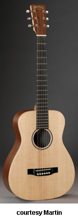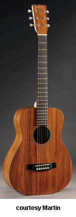 LXK2 LITTLE MARTIN | - downsized 0 body style, HPL Hawaiian koa patterned top, HPL Hawaiian koa patterned back and sides, gold and black herringbone-style rosette, natural Stratabond neck, 14/20-fret East Indian rosewood fingerboard, HPL koa pattern headstock overlay, three-per-side chrome tuners with small buttons, East Indian rosewood bridge, no pickguard, available in Natural semi-gloss finish, 23 in. scale, padded gig bag included, mfg. 2004-present. |