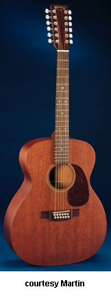 000-15S | - 000 12-fret body style, solid mahogany or solid sapele (2003-present) top, back, and sides, round soundhole with gold and black Herringbone rosette, select hardwood neck, 12/20-fret rosewood fingerboard with Style 28 dot inlays, slotted headstock with solid rosewood overlay and raised gold foil logo, three-per-side open-style Schaller chrome tuners with acrylic buttons, rosewood bridge, tortoise color pickguard, available in Natural Satin finish, 25.4 in. scale, mfg. 2000-present. |
