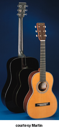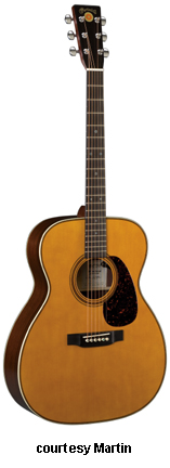 OMJM JOHN MAYER | - Grand Auditorium 14-fret 000-style body, solid Engelmann spruce top, solid East Indian rosewood back and sides, hybrid X scalloped bracing, round soundhole with Style 45 three-ring rosette (5/9/5 grouping with a large middle ring of abalone pearl), bold herringbone top inlay, B/W Boltaron back inlay, select hardwood neck, 14/20-fret ebony fingerboard with MOP dot and 12th fret double dot with square inlays, solid East Indian rosewood headstock overlay with large old style silver logo, three-per-side nickel Gotoh open-geared tuners with butterbean knobs, ebony belly bridge, white bridge pins with abalone pearl dots, tortoise color beveled pickguard, Martin Gold Plus Natural 1 electronics, label signed by C.F. Martin IV and John Mayer, Natural polished gloss finish with Vintage Toner top, 25.4 in. scale, case included, mfg. 2006-present. |