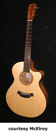 McELROY GUITARS | Instruments currently built in Seattle, WA, since 1995. | Brent McElroy has been building guitars since circa 1995. McElroy's guitars are hand built and supervised by his cat named Picasso. Guitars are based on traditional designs with McElroy's own twist on things. For more information contact McElroy directly (see Trademark Index). | | ACOUSTIC |