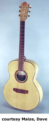 MAIZE, DAVE | Instruments currently built in Cave Junction, OR. | Luthier Dave Maize handbuilds acoustic and acoustic bass guitars with wood he has milled from prized trees or from growth of old timbers. His guitars are known for their tone and state-of-the-art design. Maize builds a select number of guitars each year so it allows him to spend more time on each model. Players currently using Maize instruments include, Jack Casady, Phil Lesh, Adam Clayton, and Jeff Ament. Maize was previously located in Talent, Oregon. For more information visit Maize's website or contact him directly (see Trademark Index). | | ACOUSTIC & ACOUSTIC BASS |